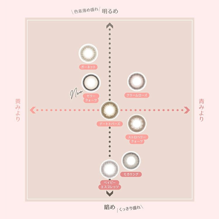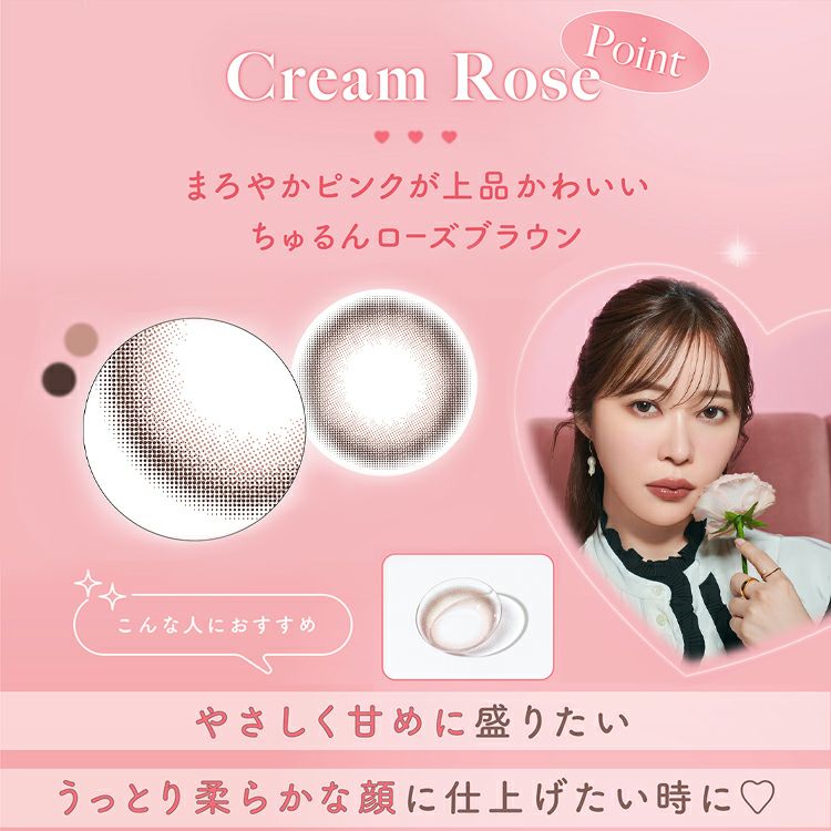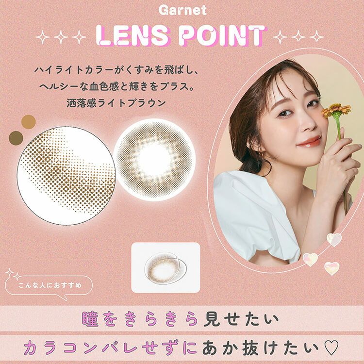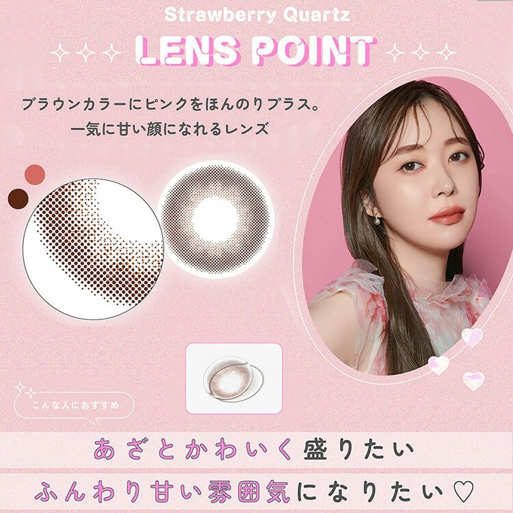 ブラウンカラーにピンクをほんのりプラス。一気に甘い顔になれるレンズ。