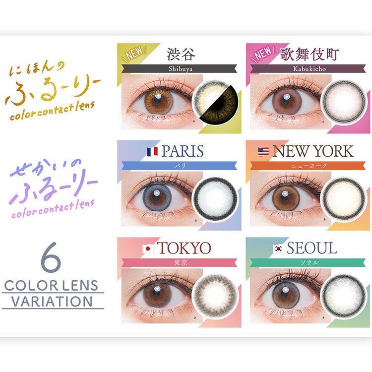 「せかいのふるーりー」は世界の人気都市をテーマにしたレンズ名、パッケージで、カラコンを手にするだけで旅行気分に♥