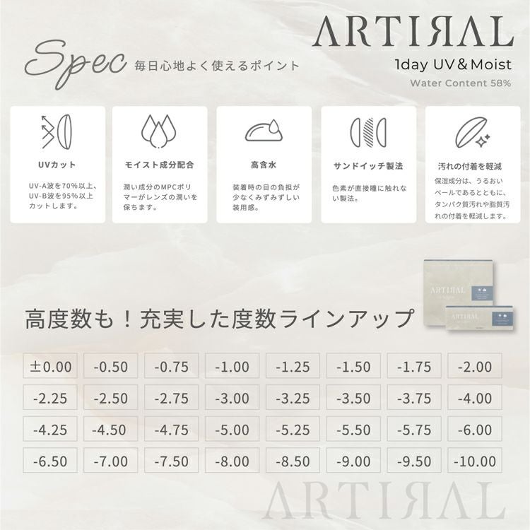 商品名 ARTIRAL 1day UV&MOIST 58(アーティラルワンデーUVモイスト58)