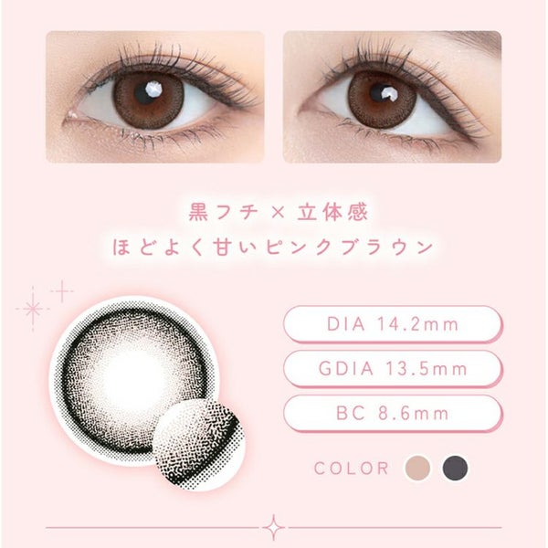ブラウンとライトベージュが瞳に艶を出す水光レンズ