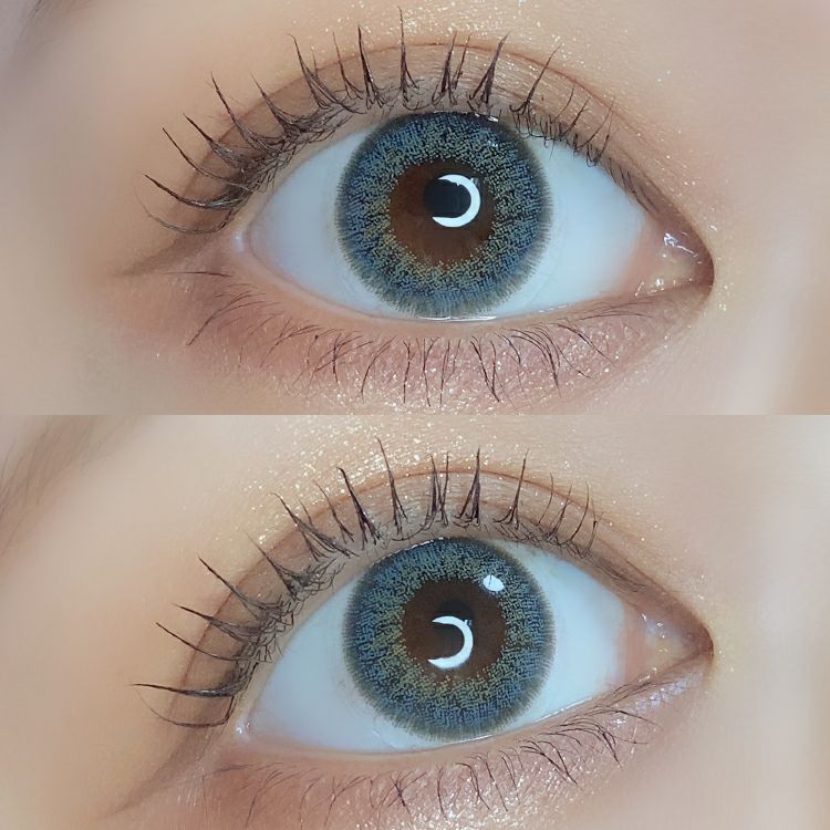 裸眼の色によって異なる発色になり自分自身に似合う青みグレーに。繊細で吸い込まれるような瞳に