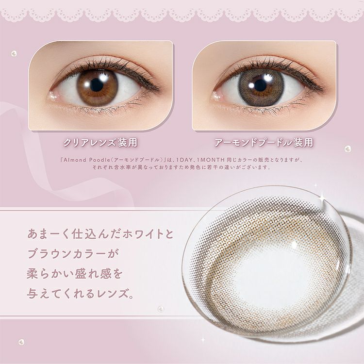 あまーく仕込んだホワイトとブラウンカラーが柔らかい盛れ感を与えてくれるレンズ。