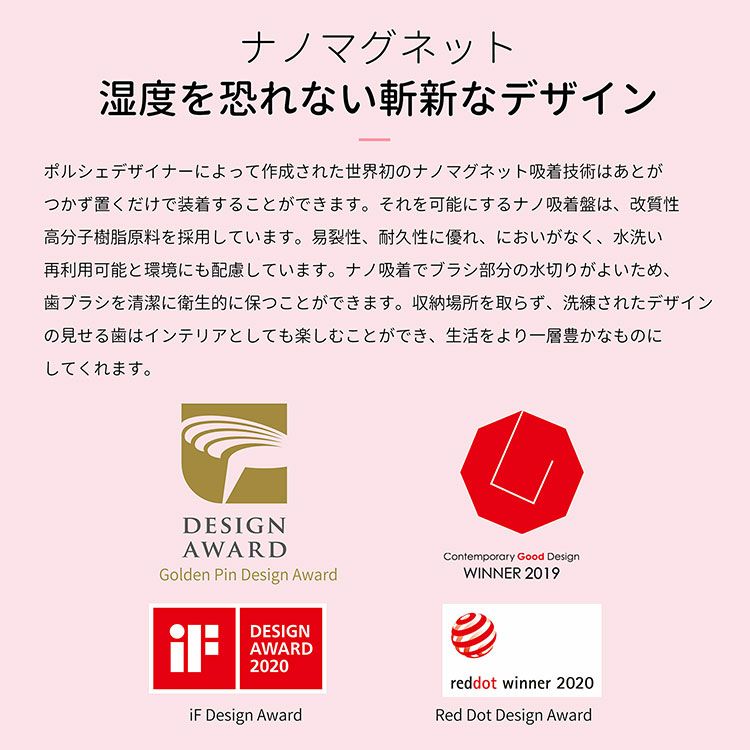 • 細菌の殖を防ぐ衛生的な歯ブラシ。ナノマグネットで湿度を恐れない斬新なデザイン